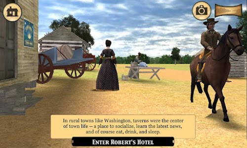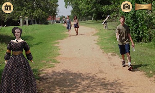 Discover the town by walking around the historic site, meeting the people and exploring the buildings as they were in 1836. Toggle between the full virtual world and the augmented-reality view that superimposes buildings and people against the modern environment.