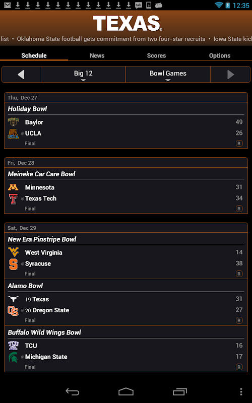 *Includes live scores for all regular season college football and basketball games, as well as Bowl Games, the NCAA College Football Playoff, conference tournaments and March Madness.