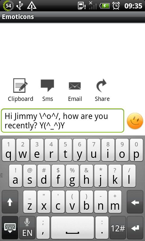 You can use this app to send SMS or Email with textual emoticons to your friends.