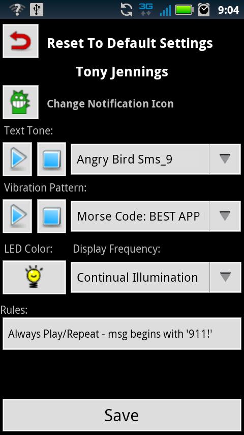 -Choose silent ways to be notified (LED Lights or Vibrations) and still know who the messages are from and how many messages they have sent.