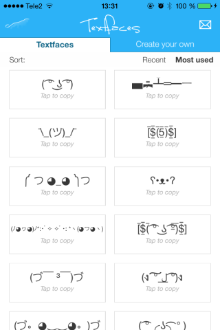 To copy a face, simply tap on any face in the app and it will be copied DIRECTLY to your pasteboard! Now simply paste to use! Three simple steps!