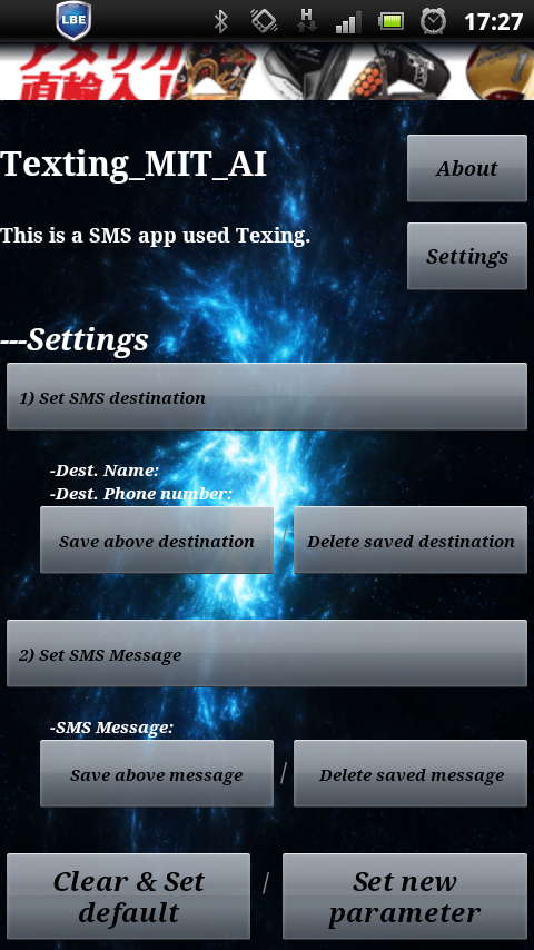 - The mobile phone number is a SMS destination is obtained from the contact information that is registered to the Android device using PhoneNumberPicker of the MIT App Inventor(※2).