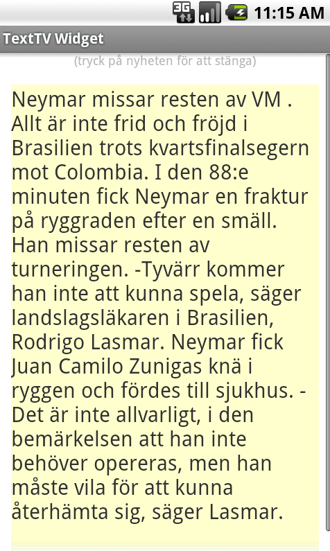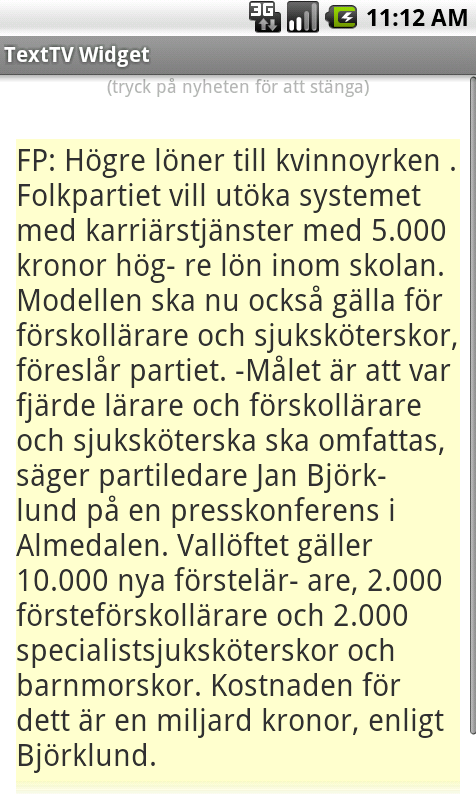 * Automatically retrieves news from page 100 SVT Text, every 30 minutes.