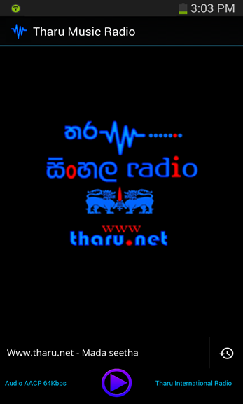 Tharu is a Sri Lankan "Sinhala and Hindi music radio" which stream Sinhala and Hindi music. Streaming best audio quality with higher Codac flash audio system and studio quality Dynamic range that in higher global class.