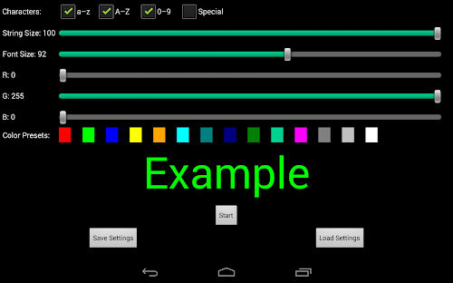 Choose to include lower case, upper case, numbers, and even special characters, in any combination. Create a string with a length from 4 characters to 100. Then, customize how the generated string will look on your string, choosing how large the font size is, and creating your color of choice.