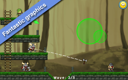 The shooting system is similar to system movement. To shoot the circles will be green. Simply moving click and drag your finger on any area of the right half side of the screen, where the enemies are, to adjust the properties of the shot, which is the speed or power of the arrow, and its direction. The arrow will make a parabola with the assigned properties.