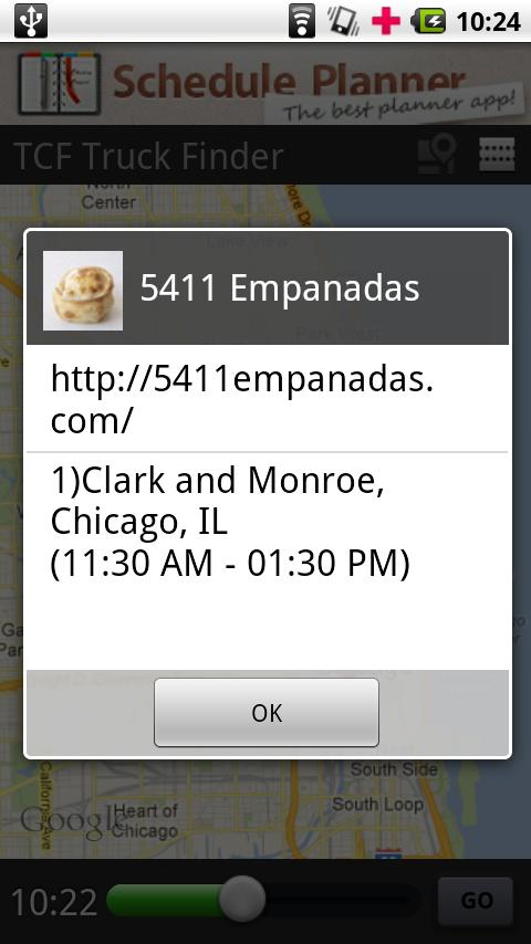 The Chicago Food Truck Finder incorporates an easy-to-use interface that’s fully integrated with the titular organizations website -- http://www.chifoodtruckz.com/. Here’s how it works: When you launch and app and write in your address or current location, you’ll receive a list of food trucks in their area and what time they’ll be there.