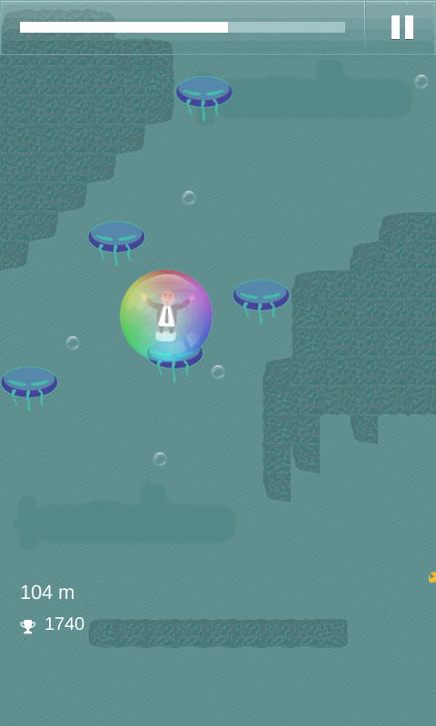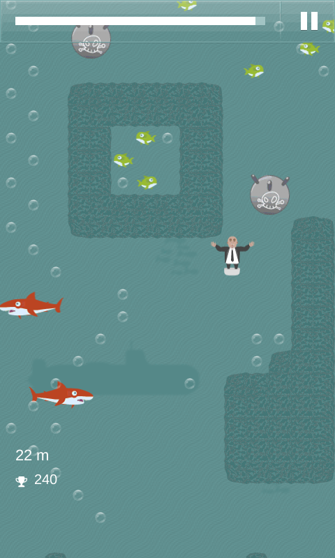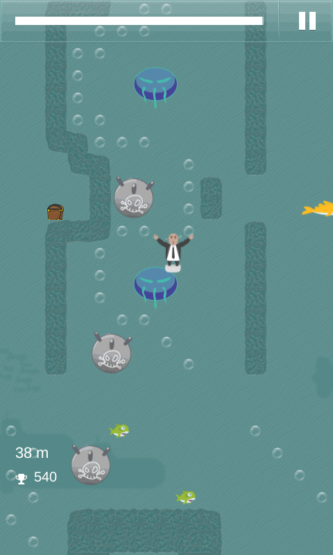 The Deepest Dive is a game where you try to survive for as long as you can while sinking to the bottom of a bottomless ocean. With cement shoes on your feet, your only chance to survive is to collect air bubbles and avoid the deadly underwater life forms.