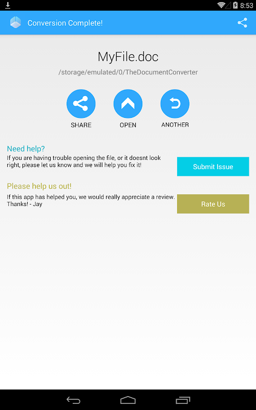 After document conversion is complete, you can open and share the file, and have access to all your converted files.