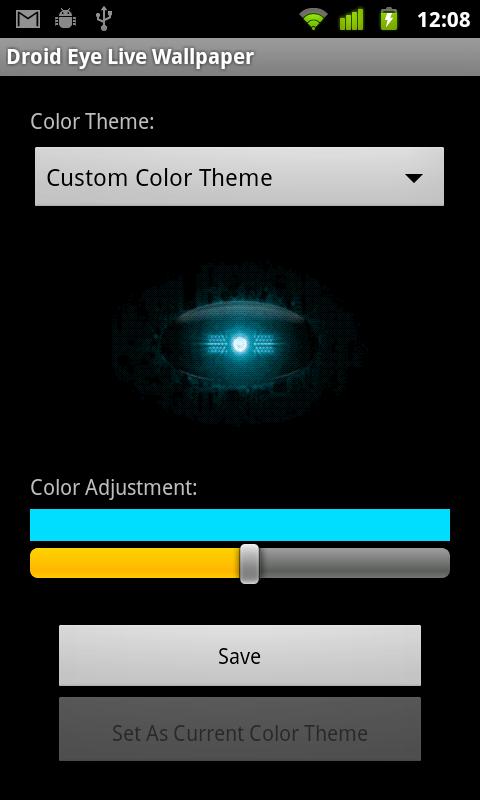 A highly customizable Droid Eye Live Wallpaper for 2.1+ devices that support Live Wallpapers