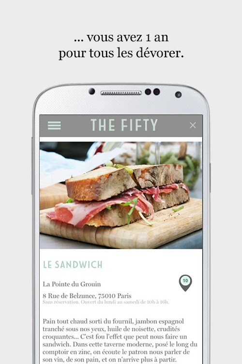 Sur Pinterest : http://www.pinterest.com/mylittleparis/List of dishes • Restaurants • Geolocation • Check-In • Schedules and contact booking • price