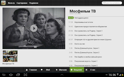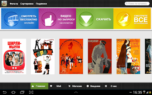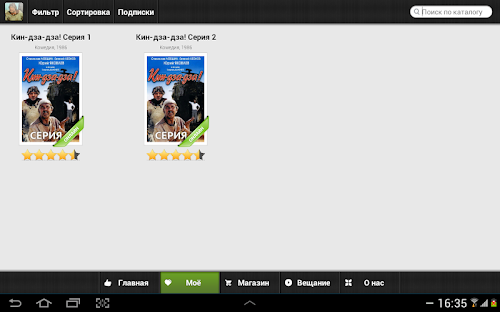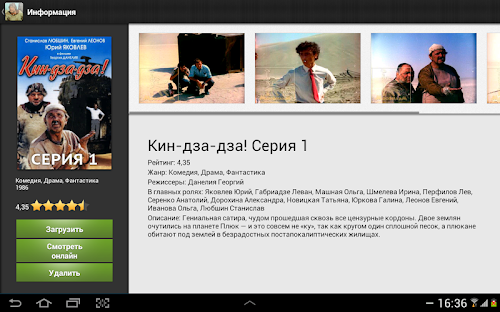 In addition to watching the movie "Kin-Dza-Dza", you can buy any film studio "Mosfilm", without leaving the application.