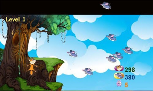 You play the cat who protects the magic tree. You get 1 point for each mouse you scare away.The mouse gets 5 points for reaching the magic tree and becoming invisible.In the magic kingdom, mouses can fly. Now they want to be invisible too. If they can fly to the magic tree on a mysterious cliff, they will become invisible. The problem is there is a crazy cat who tries to stop them.