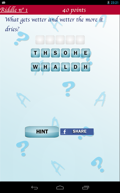 A free game about riddles, as you go guessing each one, you win points which can be changed into hints.