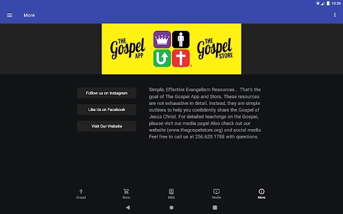Simple, Effective Evangelism Resources... That's the goal of The Gospel App and The Gospel Store. This resource is a simple outline to help you confidently share the Gospel of Jesus Christ. The app also includes detailed teachings on the Gospel and Evangelism on the Media Page. Visit www.thegospelstore.org for more details.