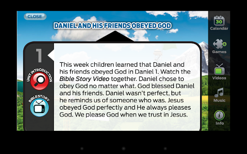 Parents are key to building spiritual foundations in their kids. The Gospel Project for Kids Family App enables parents to reinforce each week's Bible story at home. Each quarter, the app provides a unit introduction and a five-day calendar filled with simple family activities and links to Bible story and discussion starter videos, key passage songs, and fun games. If kids are sick or traveling, parents can use the app at home so their kids won't miss a thing!