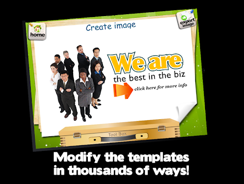 • Fun features: Place your logo onto virtual billboards, trade show booth images and more, all included in The Graphics Maker! Send these images to your friends and show them how important your company is.