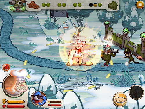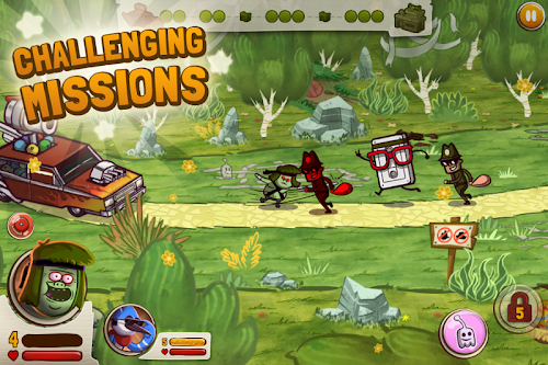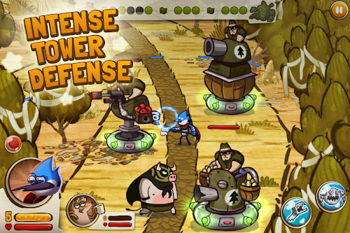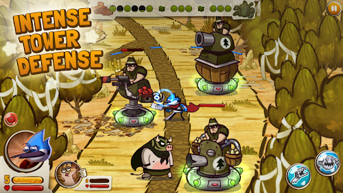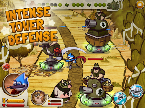 Choose to play as Mordecai, Rigby, Muscle Man or Skips. Each one of them has trained in a specialized pranking art and developed unique powers to put the hurt on the bad guys. And in the Great Prank War, even the towers are prank-themed, using eggs, glue, fart cushions and other gimmicks to defend your turf. It's Regular Show at its prankiest!