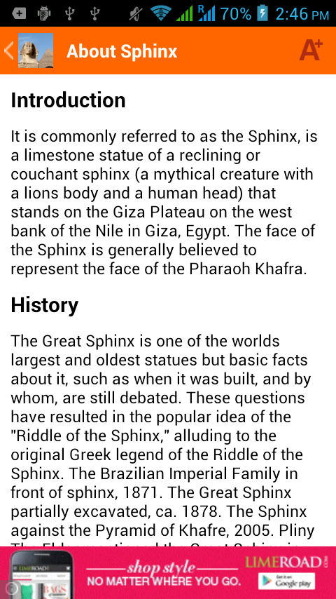 The The Great Sphinx of Egypt app also provides information on the visiting hours and the entry fee that is charged from all tourists who come from all around the world to see one of the wonders of the world.