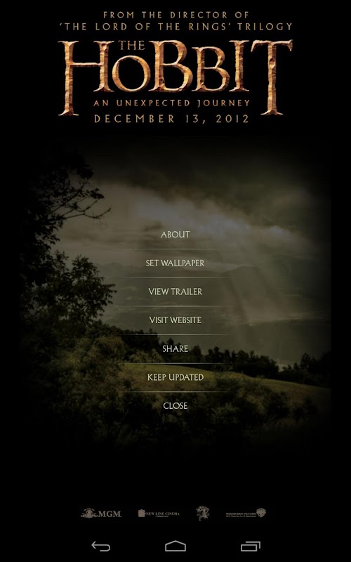 Personalise your phone or tablet with the official live wallpaper featuring scenes from the upcoming release of "The Hobbit: An Unexpected Journey". The wallpaper features four high quality animated scenes from locations on Bilbo Baggin's famous journey.
