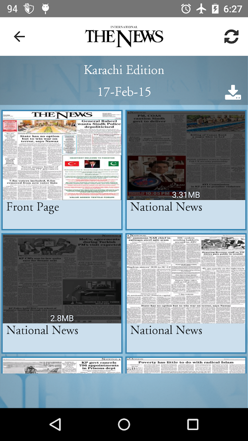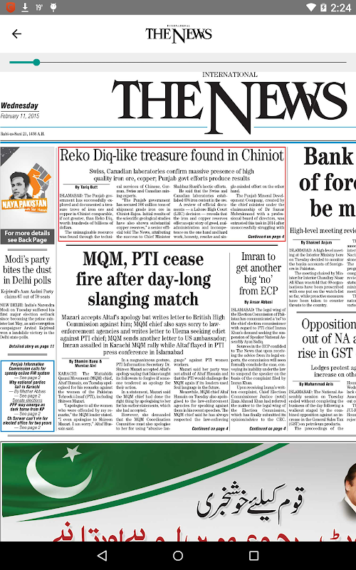 Official ePaper app for The News International. Read the daily newspaper in original format. Download pages for optimal offline reading. Browser latest and archived editions. Pre-download most read pages to ensure great experience and quick reading.