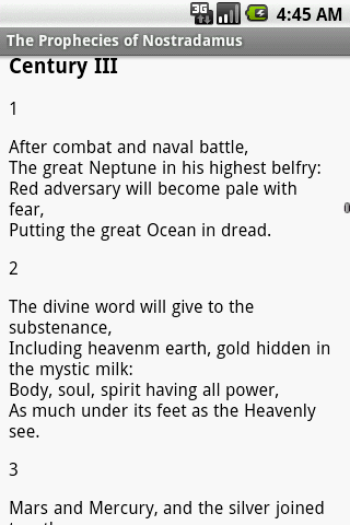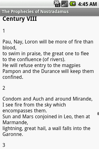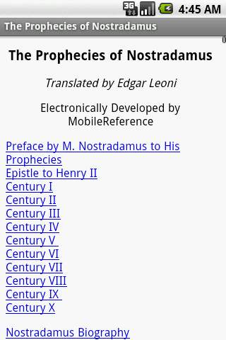 This version of The Prophecies of Nostradamus Android App comes with one universal variant which will work on all the Android devices.