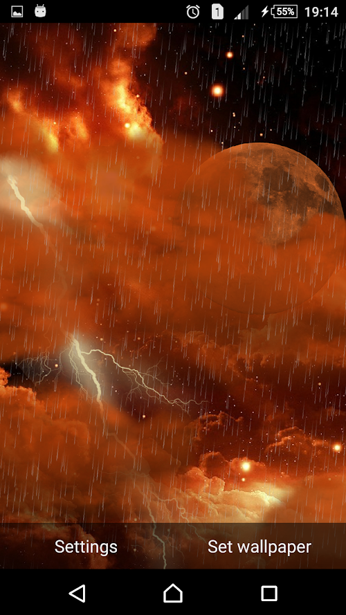 The real thunderstorm is an amazing free live wallpaper for Android. It has a beautiful storm with clouds, rain and very realistic thunderbolts. You can change the sky picking different backgrounds.