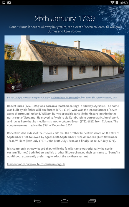 • A redesigned and expanded timeline section, with in-depth articles and images on the key events of Burns's life and his poetry.