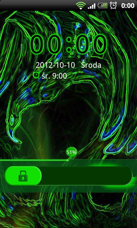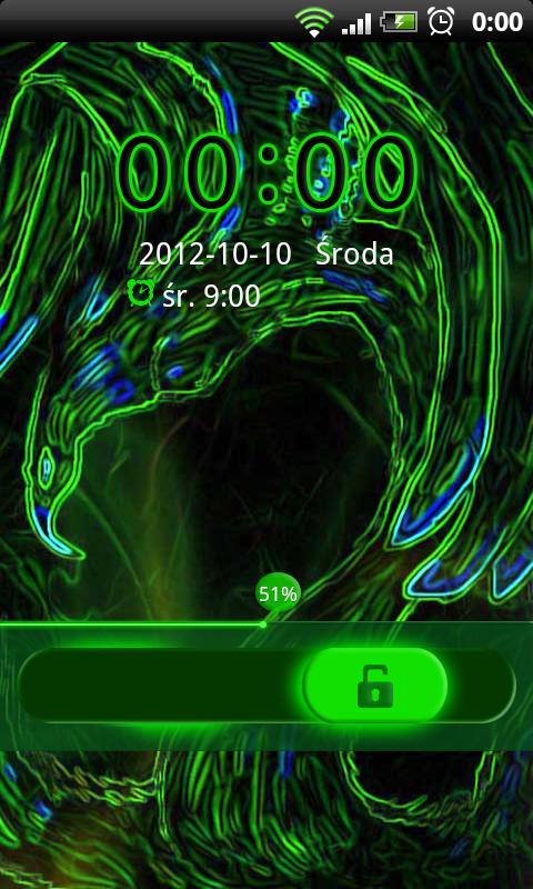 Especially for fans of the fantasy world of magic and have created this amazing theme. Wallpaper represents fabulous, mystical creature, which is the phoenix. Phoenix is unusual, the mythical bird that is considered to be a symbol of the sun and the rebirth of life. Dies in the flames, and then is reborn from the ashes as a chick. Locker Phoenix Theme will fire up Your phone. You can show the world Your originality by letting the Sacred Beast on Your deskop. Wallpaper presents the immortal bird in brilliant deep colors to create this hypnotic character. Deep black beautifully interacts with neon green. Unlock slide bar is a green button with a tiny padlock, you must just tap the screen and move your finger to the right.