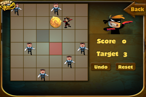 Thief and bounty is a very interesting puzzle game. If you liked ice floe , unblock me then you are going to love Thief and bounty. The objective of this puzzle game is very simple. The puzzle is to slide the cops and thief so that in the final move thief reaches on the bounty spot. First two levels are demo levels that will help you understand.