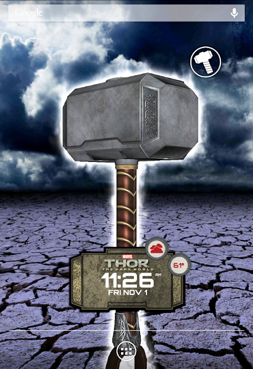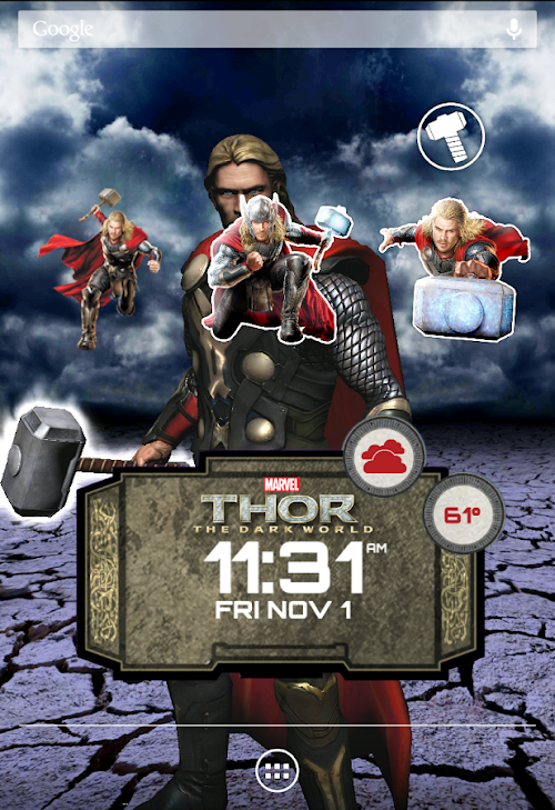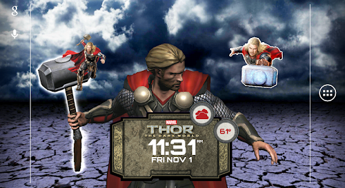 Hear the Bringer of Lightning recite the time for you as well as little surprises here and there for you to discover while the Thor Clock Widget is set to your home screen.