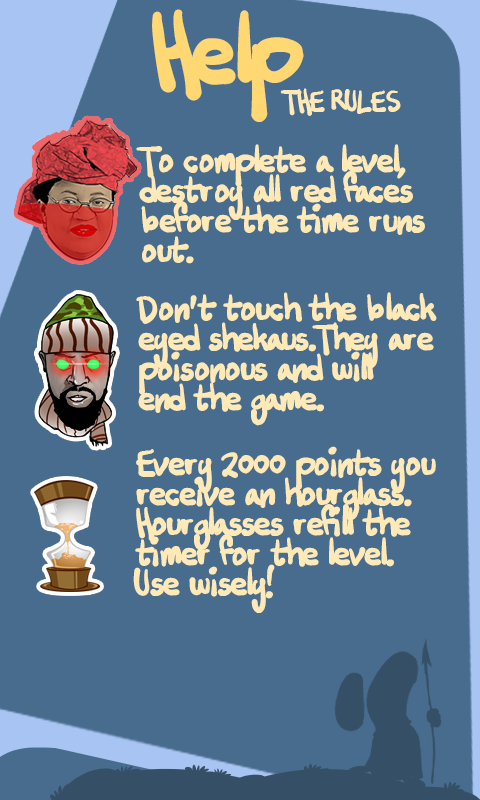 Smash as many heads as you can, an while you are at it, smash many more too. Smash as fast as you can to get an hourglass- hourglasses replenish your timer.