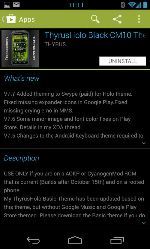 If you are looking to download other versions of ThyrusHolo Black CM10 Theme Android App, We have 1 version in our database. Please select one of them below to download.