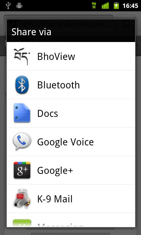 View any Tibetan text or webpage by using the "Share Via" feature of other apps like Browser, Email or Messaging.