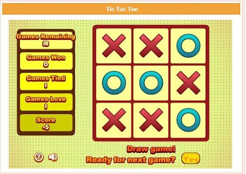 Tic Tac Toe game is a pencil-paper game for two players, X and O, who take turns marking the spaces in a 3×3 grid. The player who succeeds in placing three respective marks in a horizontal, vertical, or diagonal row wins the Tic Tac Toe game. Players soon discover that best play from both parties leads to a draw (often referred to as cat or cat's game). Hence, tic-tac-toe is most often played by young children.