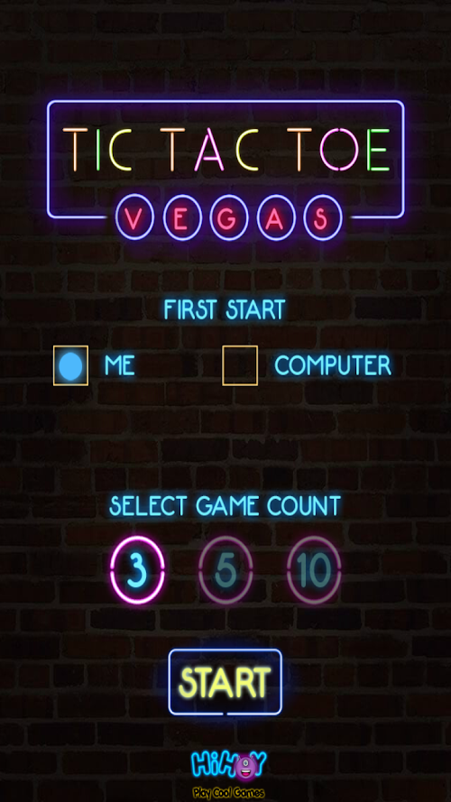 Tic Tac Toe is a multiplayer game in which can be made triple grid with X or O letters. At this enjoyable mini game, Tic Tac Toe Vegas it will make you feel cult style decorated with Neon lights of Vegas. You can play it with your friend or against the computer. Morever at this game you can play triple, quinary or decimal matches. You can follow game scores at the top of the game. You must bring three same images together as horizantal, vertical or travers. Prove that you are more intelligent than your friend.
