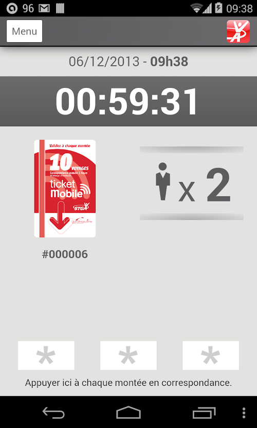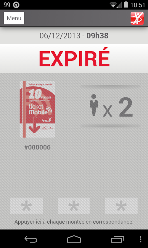 Travelers will have the opportunity at any time to select their ticket from a virtual portfolio and composted at the time of their displacement. A countdown of 60 minutes indicate that the ticket is valid. Control is usually completed via a code that will display on the screen of the Smartphone