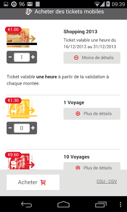 Le portefeuille de ticket peut être partager entre plusieurs personnes et l'application permet de monter à plusieurs avec un seul ticket (ticket 3 et 10 voyages).