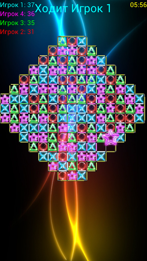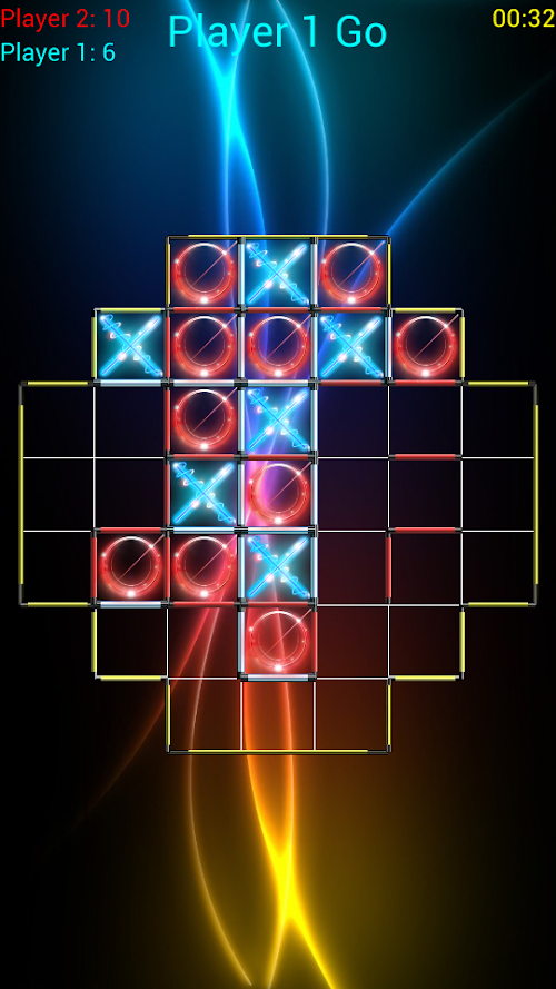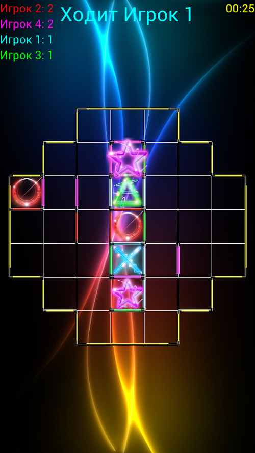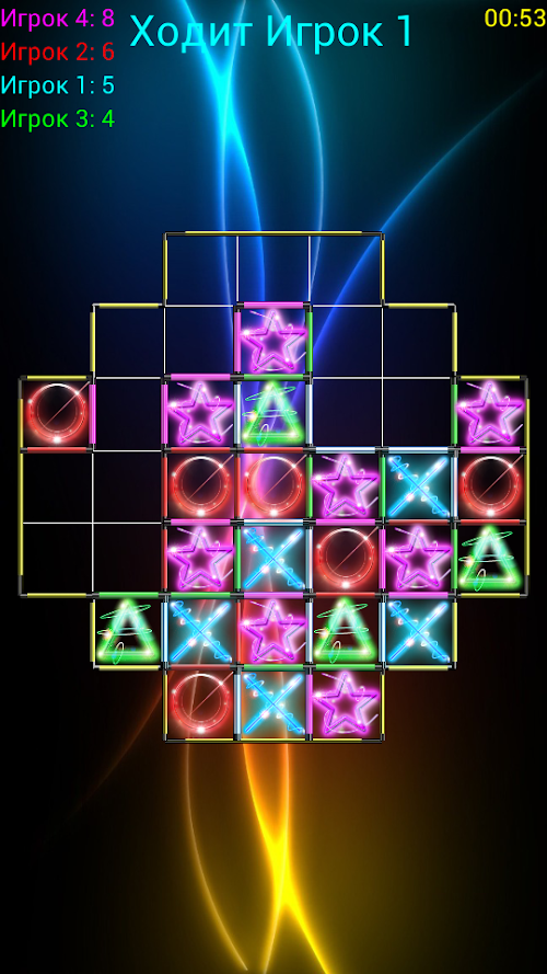 В игре может одновременно участвовать до 4х игроков. Имеется возможность выбора между игроком-человеком и компьютером (легкая или тяжелая сложность).TicTacToe SuperGlow - this is a free game that is a puzzle, a faint resemblance to a game of tic-tac-toe. But, despite the name, here a very different principle.