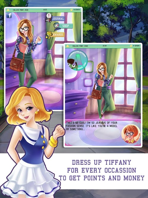 Are you a real fashionista and do you love to shop? Then you need to download this realistic dressup game! Tiffany is a real fashionista and loves fashion help her with her clothes when she goes to college or study in the library or to a party! Shop her clothes in the store and follow the fashion trends, be a real fashion designer!