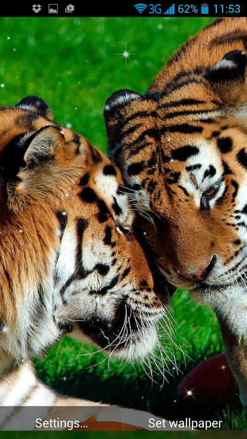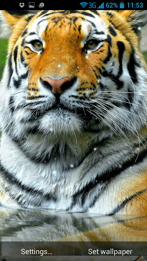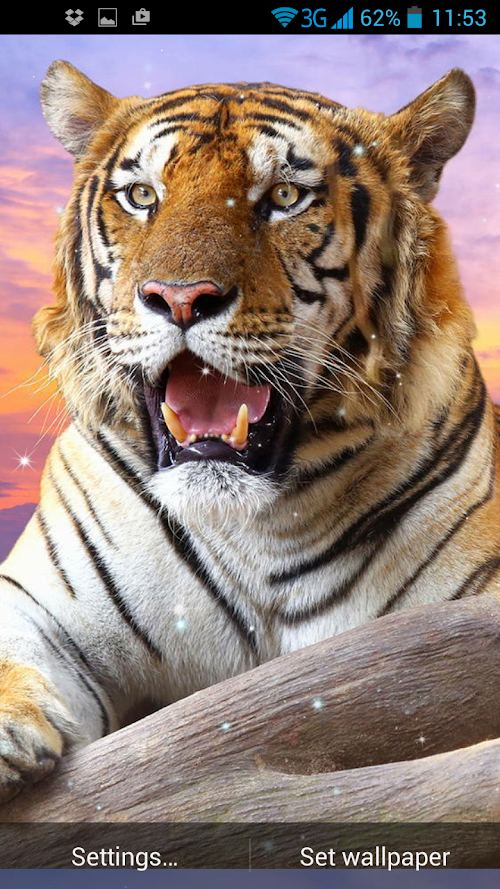 Check out this cool new Tigers background wallpaper because it brings you most amazing HD images of exotic wildlife! Tiger Live Wallpaper will bring a colorful and exotic experience to your Android™ or Samsung Galaxy smartphone. If you simply cannot resist the call of the wild, African Safari Live Wallpaper is the perfect new app for your smartphone. You will absolutely love HD pictures of beautiful tigers in their natural surroundings. Prepare for the unique safari experience with your brand new Tiger Live Wallpaper and its various HD background pictures of this awe inspiring wild animal! This is a unique background app with pictures so realistic you will think that there is a real tiger looking at you. Explore the rich flora and fauna of tropical forests, prairies and steeps with this wonderful new animal live wallpaper! Watch breathtaking tigers roaming through among the trees and bushes, prairies and steppes lurking their prey. Explore the wildlife and enjoy the adventure with amazing tigers! Explore the rich flora and fauna of tropical forests, prairies and steeps with this wonderful new animal live wallpaper! You can explore exotic destinations, listen to the soothing sound of rustling waterfalls and watch cheerful monkeys playing around, quietly observe breathtaking tigers lurking their prey. This amazing new app will take you to natural habitat of this amazing wild animal species where you will have the chance to hear their powerful roars and howls.