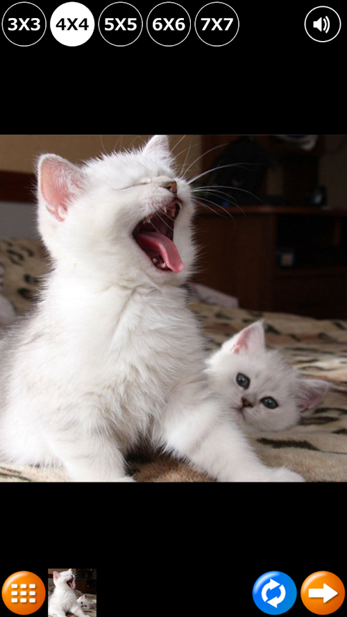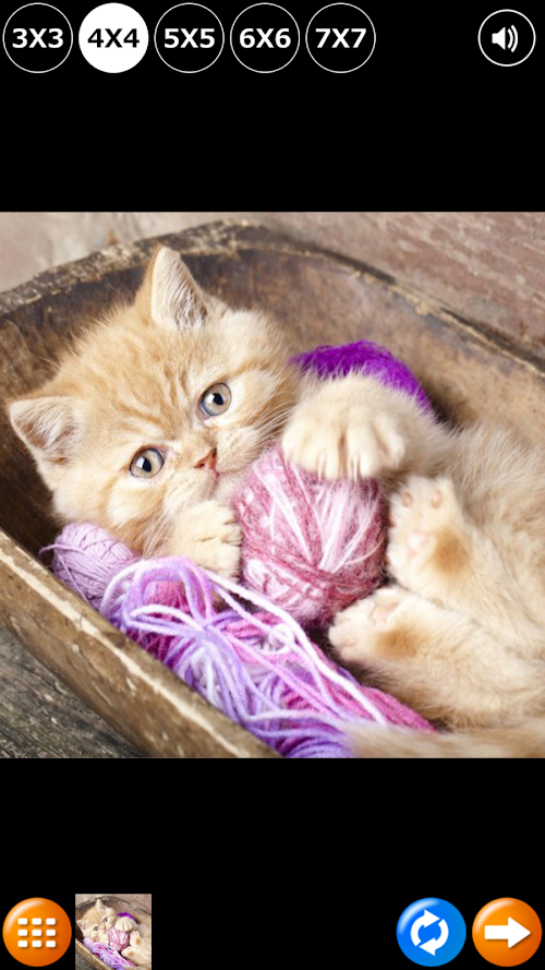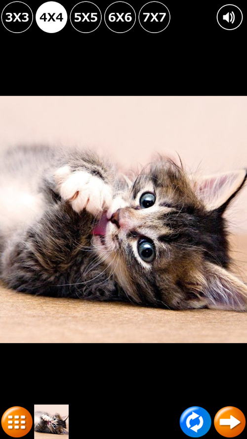 - This tile puzzle game contain 3x3, 4x4, 5x5, 6x6, 7x7 levels with pictures of cute kittens.