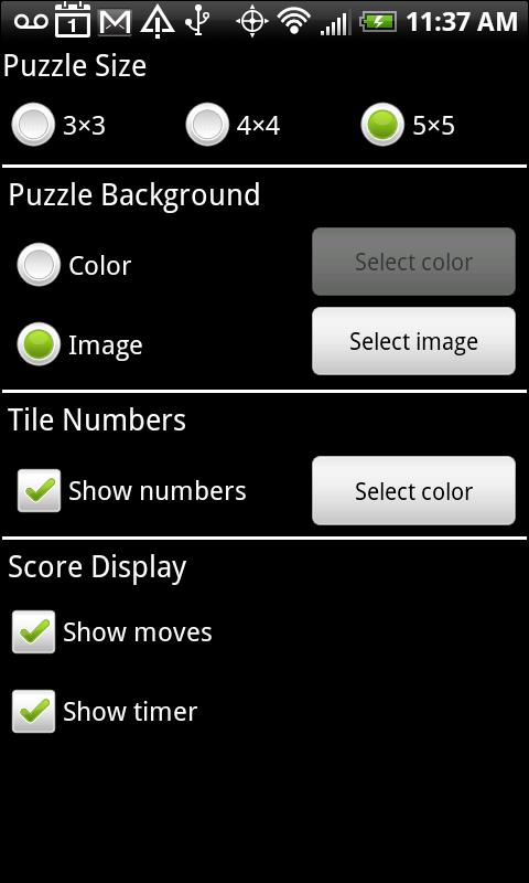 ☆ Play 3×3, 4×4, or 5x5 tile puzzles