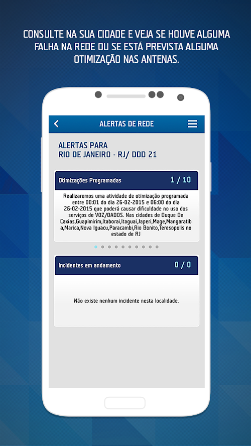 • Receba alertas de rede: fique informado sobre otimizações programadas e incidentes em andamento perto de você.