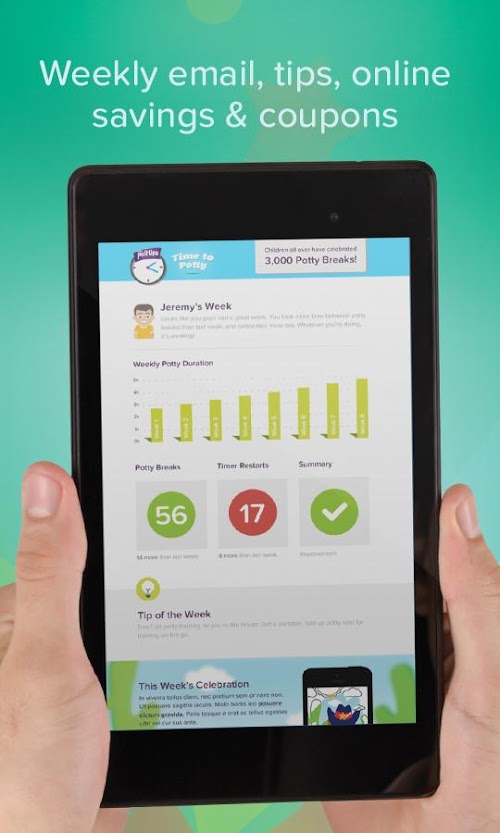 • Weekly email updates that track your child’s potty progress with tips and offers tailored to your stage in the potty training journey