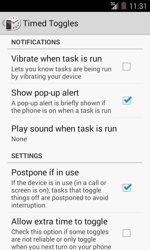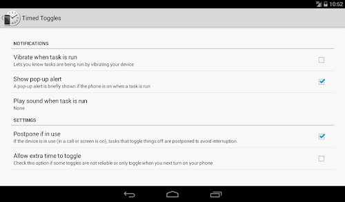 Run at startup: When an Android device is restarted, it forgets any reminders that applications have asked for. This permission allows Timed Toggles to reset its own reminders on restart.