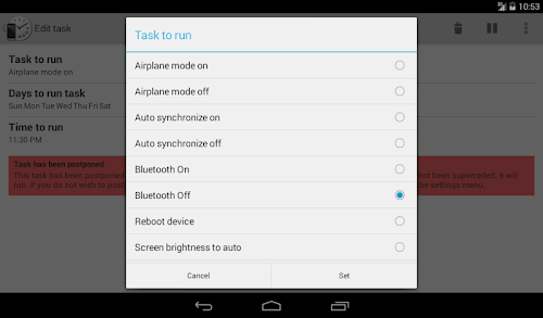Save battery power and save being disturbed by automatically toggling various settings. For example enabling Airplane mode overnight saves battery and means you can’t be disturbed by notifications, phone calls or text messages.