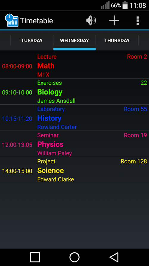 Fast, stable, and easy-to-use timetable. The application will notify you prior to the beginning and end of each lesson. Designed for students and faculty. No need to remember to mute sounds, because the application does it for you. The application does not have any ads.