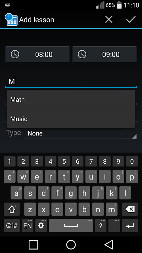 - Adding classes divided into types (lecture, lab etc.),