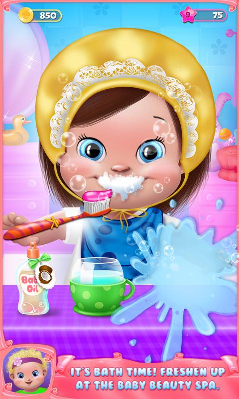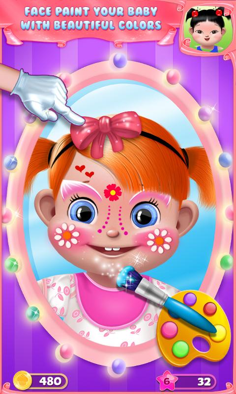 The sweetest babies go to the bath! Relax with different shampoo & soaps in the baby beauty parlor! At their face paint beauty salon use fun face paint makeup like eye, nose, cheeks and lips paint blush!